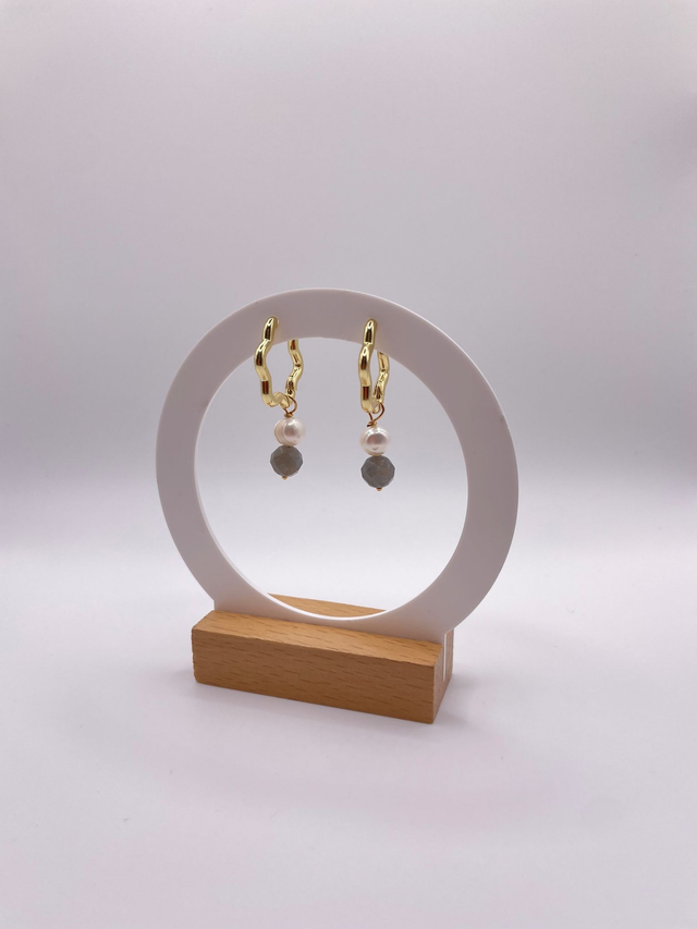 Verspielte 18K vergoldete Hoops, veredelt mit zarten Anhängern aus Edelsteinen oder Süßwasserperlen – der perfekte Schmuck für zeitlose Eleganz. Die Anhänger sind austauschbar und machen dieses Schmuckstück zum ultimativen Mix-&-Match-Wunder.