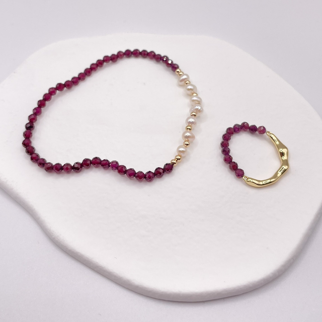 GEMSTONE BAND - Elastisches Armband mit Granat & Süßwasserperlen